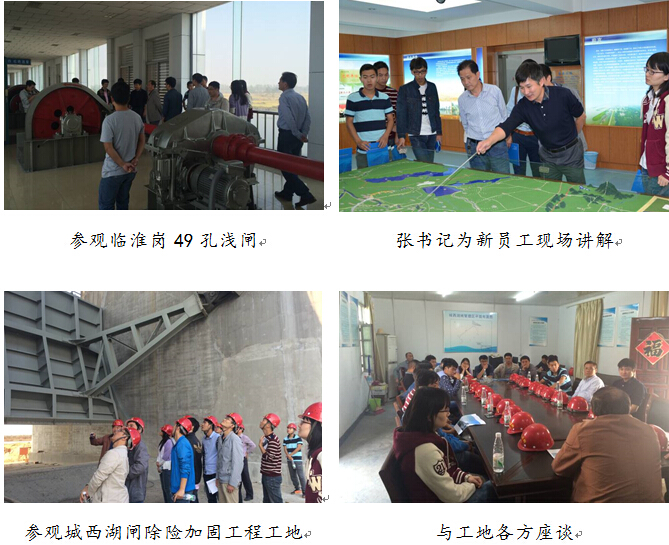 在張書記的帶領下,新員工還參觀了治淮新豐碑——臨淮崗洪水控制工程,聽取了該工程管理局領導對淮河防洪工程建設、管理與洪水的調度等介紹;在參觀城西湖閘除險加固工程建設現場,認真聽取我院城西湖閘設計項目組、監理部負責人和項目法人等相關人員的現場講解,進一步加深了對設計工作的了解。活動結束后,新員工表示:通過學習和參觀,感覺肩上責任重大,今后要更加努力地學習和工作,不辜負院領導和老員工的希望和重托,以興院強院為己任,為安徽的水利建設事業貢獻青春和力量。