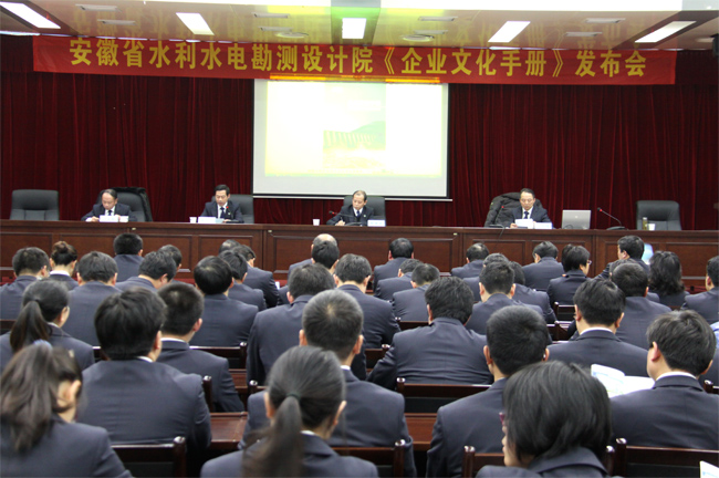 發(fā)布會(huì)上,院領(lǐng)導(dǎo)用翔實(shí)的文字資料和圖片,宣講了院企業(yè)宗旨、企業(yè)精神、價(jià)值理念、管理理念、經(jīng)營(yíng)方針和質(zhì)量方針等企業(yè)理念,激勵(lì)員工愛(ài)崗敬業(yè),增強(qiáng)企業(yè)凝聚力,提升核心競(jìng)爭(zhēng)力。要求設(shè)計(jì)院?jiǎn)T工進(jìn)一步服務(wù)安徽水利發(fā)展大局,精心培育企業(yè)文化,治水興業(yè),同創(chuàng)共享,為安徽水利事業(yè)再創(chuàng)佳績(jī),再立新功。